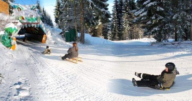 Autóbuszunk már vár ránk a vasútállomáson, és továbbutazunk a pár kilométerre fekvő Hirschenkogel hegyen található élményszánkó - ill. sípályákhoz.