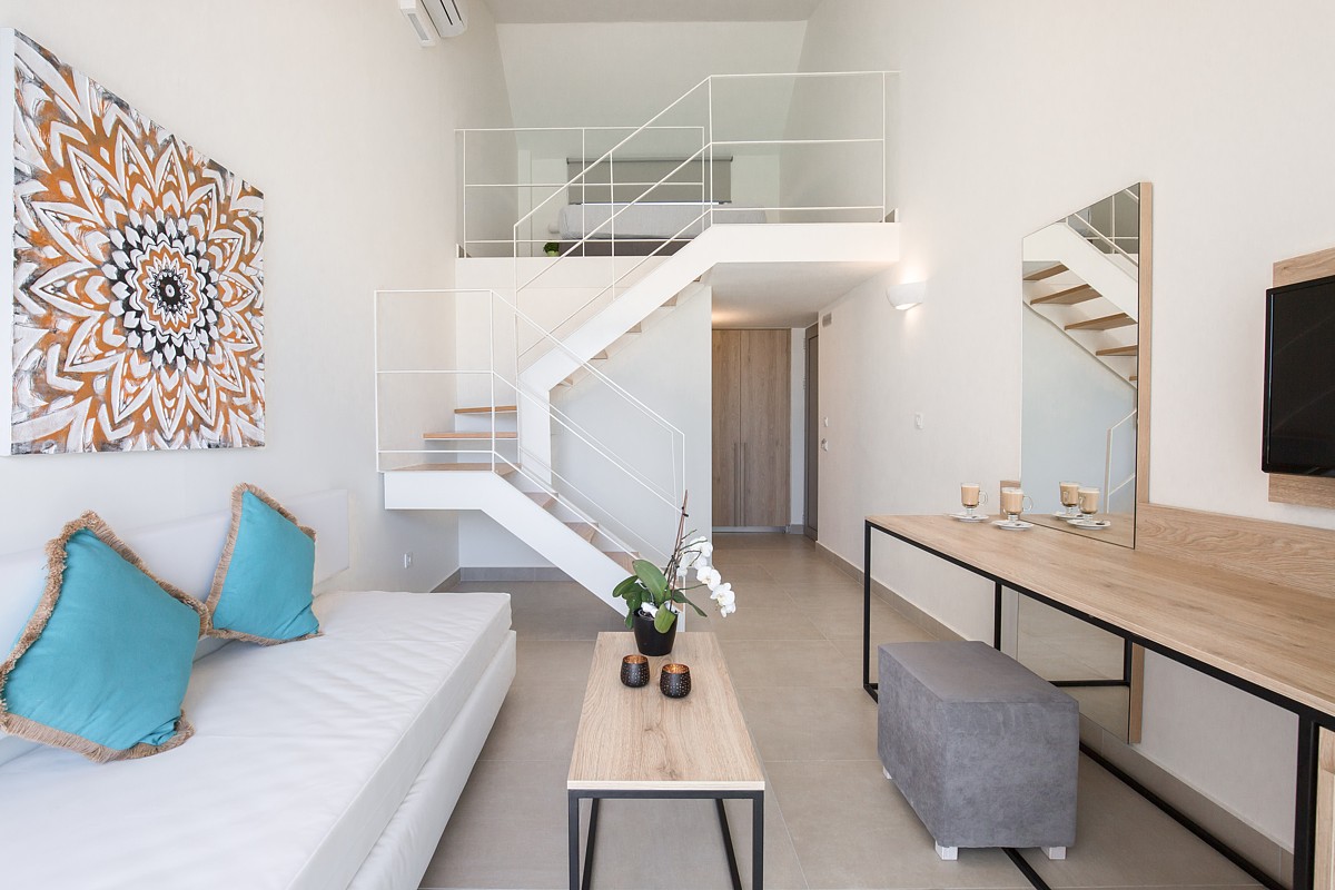 Executive Loft Suite Pool/Sea View: kb. 32m2-es, saját erkéllyel vagy terasszal rendelkező szoba. Az Executive Loft Suite egy kétszintes szállás, amely a földszinten tágas nappalival és fürdőszobával rendelkezik, míg a hálószoba az emeleten található. A szintek nincsenek teljesen elkülönítve, de némi magánéletet biztosítanak. Ezek a lakosztályok medencére vagy tengerre néző kilátással rendelkeznek.
