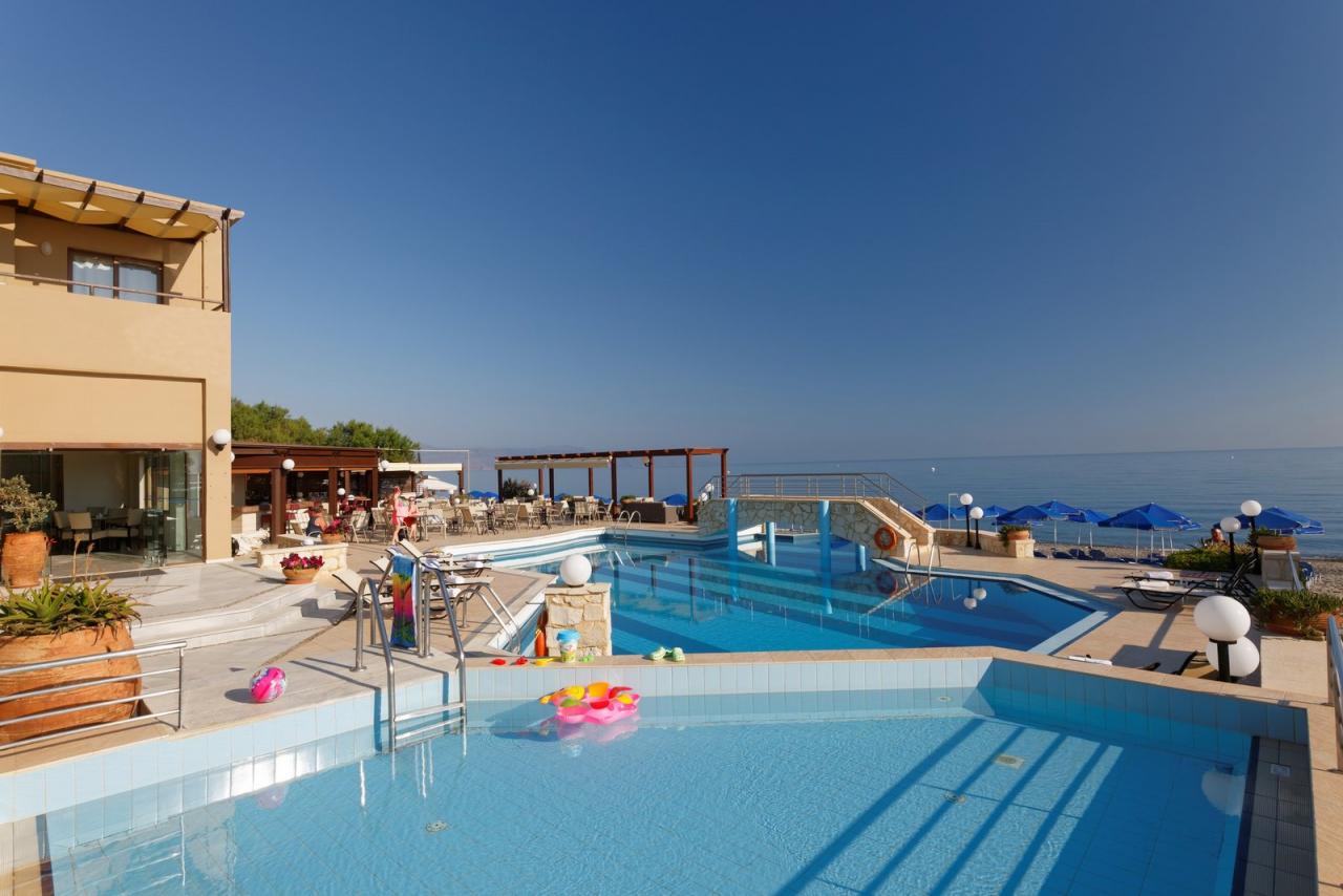 A szálloda Chania repülőterétől kb. 30 km-re, Chania óvárosától kb. 12 km-re, Platanias központjától kb. 400 méterre, közvetlenül a privát, aranyhomokos tengerparton fekszik.