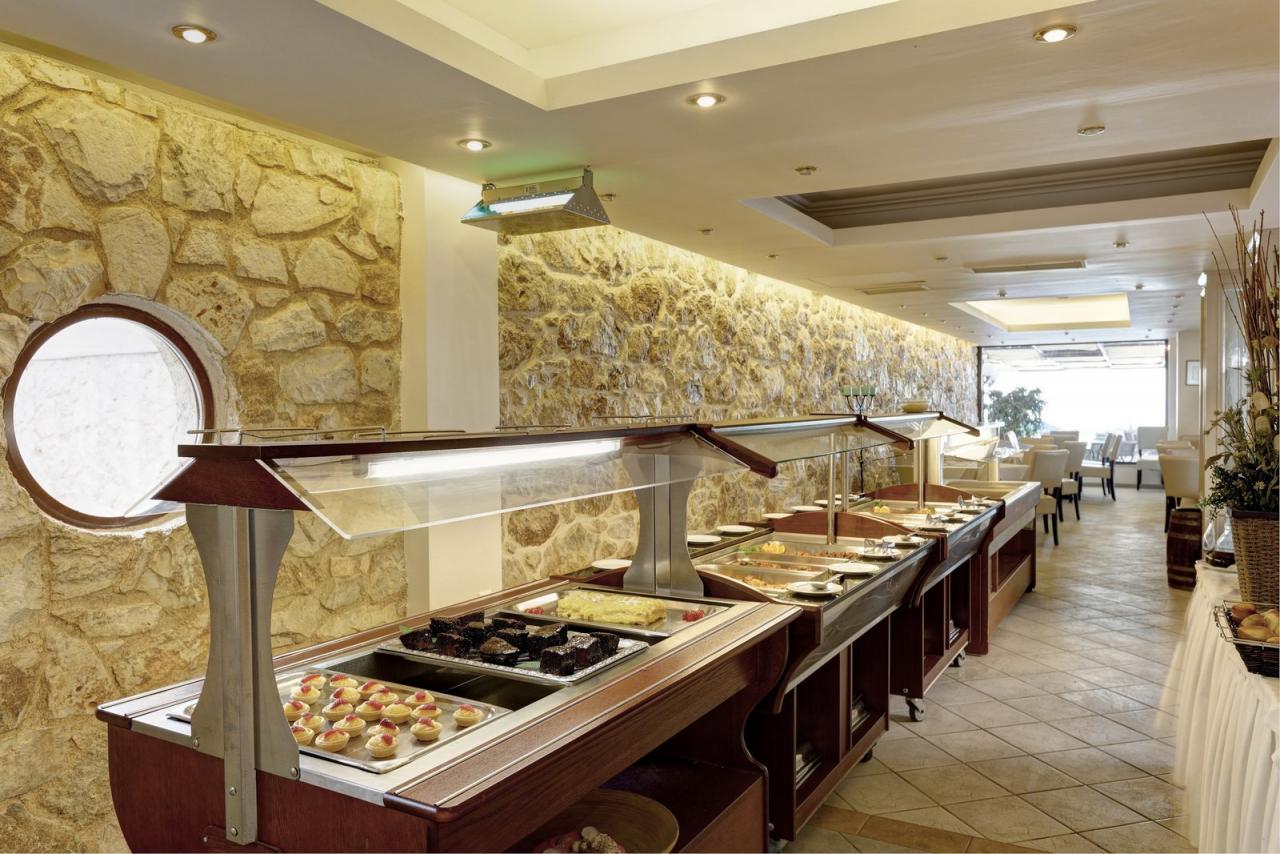 A szálláshely reggelis ellátással foglalható. Egy a’la carte étterem és egy medencebár várja a vendégeket.
